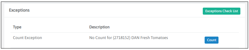Within Period Exceptions, selecting the [COUNT] button against a Count Exception type exception will now pop up with a list of count sheets that the selected product exists on, saving you from having to navigate into the relevant count sheet(s).