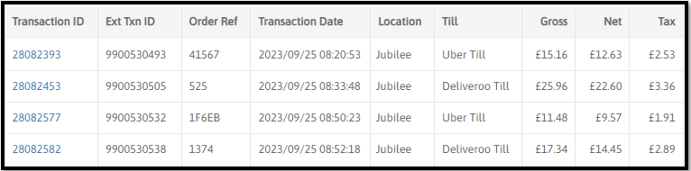 Additionally, the Transaction Analysis Report now displays the reference of each order within the new Order Ref column as below.