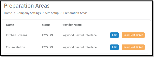 Against the relevant Preparation Area, simply select [SENT TEST TICKET] and a test order will be immediately sent to the KMS.