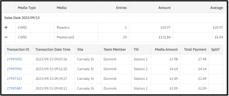 - Group By: Select whether to view consolidated totals for each payment, or whether to see payments split by day.