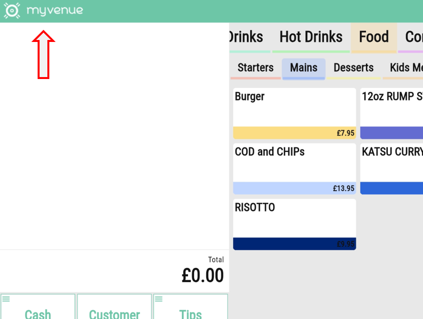 - Tap on the 'MyVenue' logo in the top left corner of the screen.