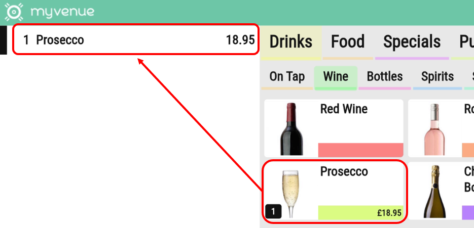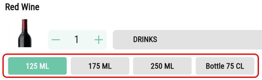 For example, the Red Wine selected below can be purchased in different glass sizes or by bottle. Select the variation you would like then press 'Update Order'.