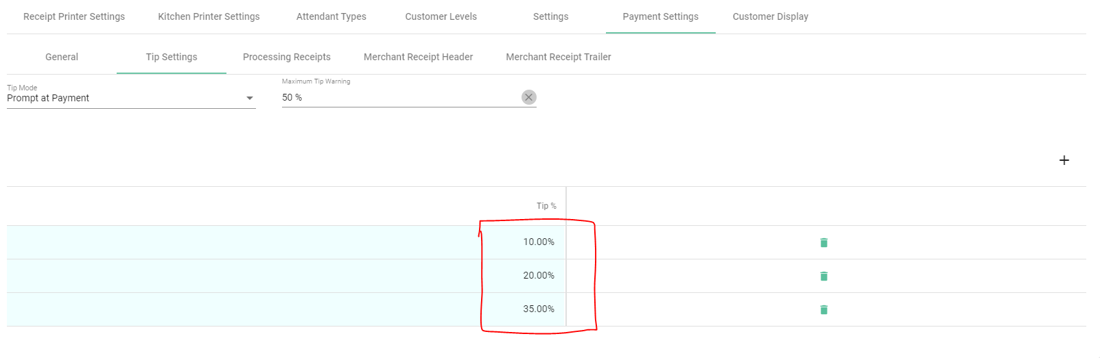 - It is best to add the Tip Suggestion tag to the receipt, this means when the bill is printed and taken to the table, the customer will be able to circle or write the amount of tip they would like to leave.