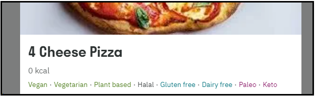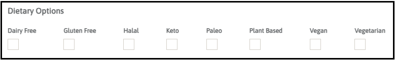 Note that not all dietary tags are supported by all platforms. For more details per platform, Click Here.