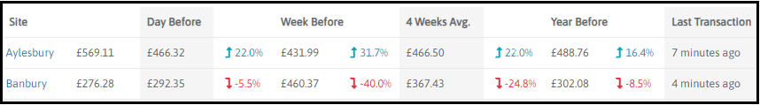This takes an average of sales on the same day of the week over the previous 4 weeks and provides a performance indications as to how sales on the current day compare against that average.