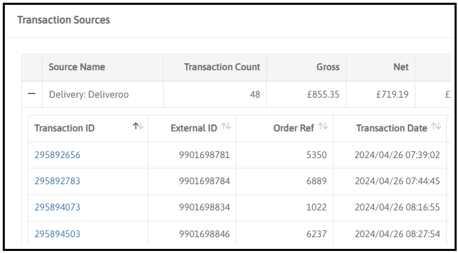 Level two of the Transaction Sources Report has been updated to include a new Order Ref column.