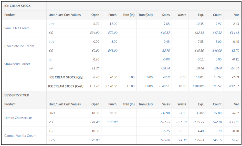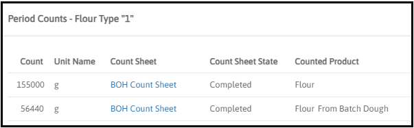 When selecting a value within the Count column of the Period Variance Report, a new Counted Product is displayed in the table of count entries. This helps identify where counts have been entered, particularly for Recipe products that are counted as a batch.