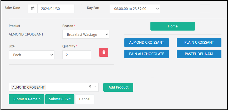 For use within the Operations Dashboard (Centegra Plus FOH portal that does not require user login), you can now configure wastage menus to make it easier to locate and select products that are wasted most often within the Wastage Entry section.