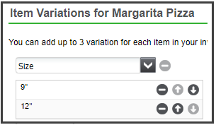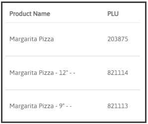For example, consider a Margarita Pizza product on the POS with two size variations of 9" and 18":