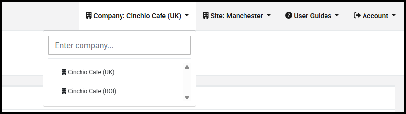 Once logged into a company, you can switch between companies at any time using the company picker within the header menu.