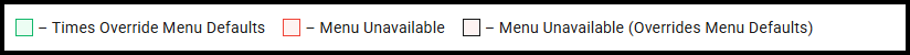 Within the Menu Timings section, times are now colour-coded to highlight: