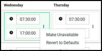 Availability can be defined within the Default Menu Hours and as a Menu Timing Override.