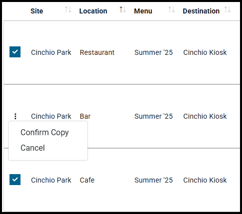 Within the Menu Timings section, you can copy times and availability from one row and apply these as overrides against other rows within the table.