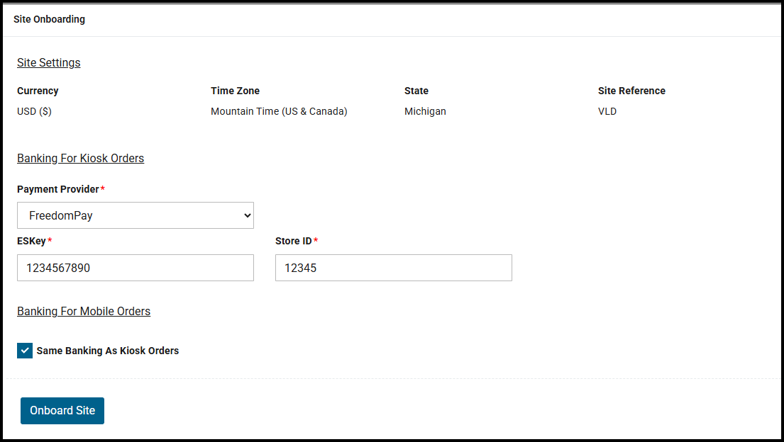 Before confirming site onboarding, you'll first need to enter banking credentials for the payment provider(s) used at this site.