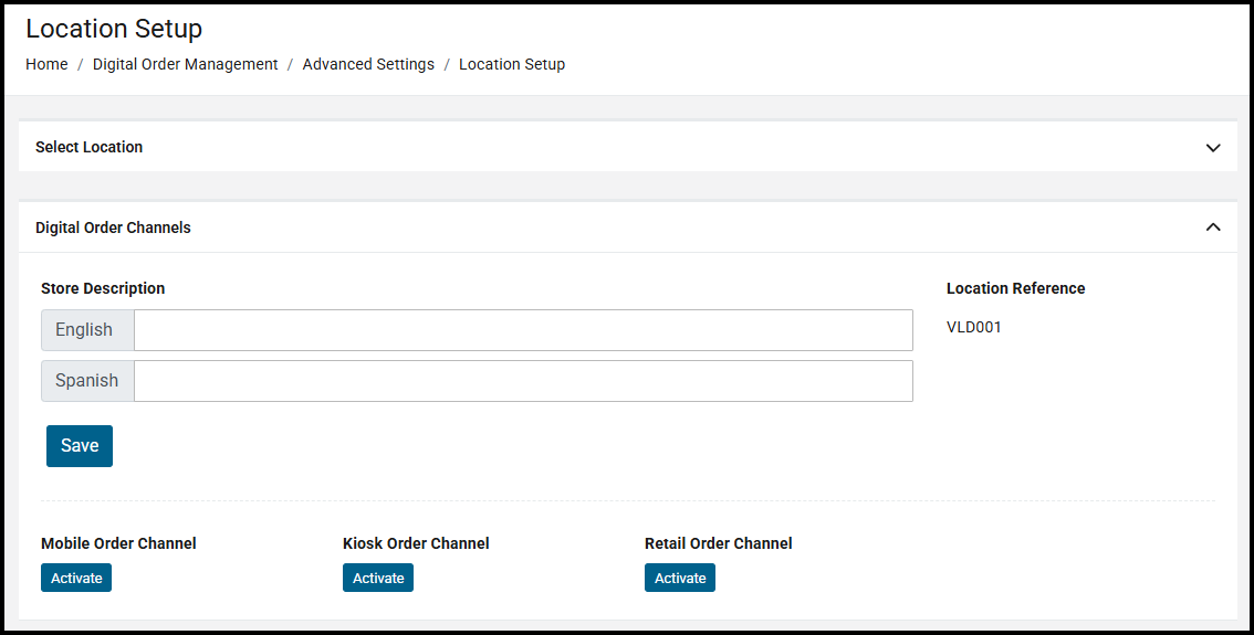 To activate a digital order channel, head to Digital Order Management > Advanced Settings > Location Setup.