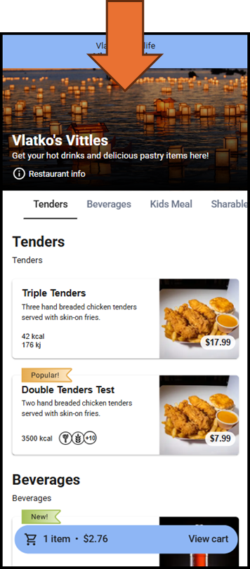 Upload an image to show within the header section of the mobile ordering experience.