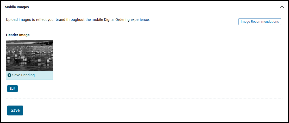 Once saved, the mobile Digital Order channel is updated and the current image is shown for reference within the Mobile Images section as below.