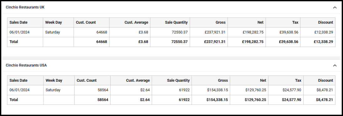 At enterprise-level, the Daily Sales Summary report provides top level sales data on a daily basis across multiple companies.