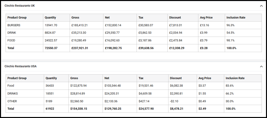 At enterprise-level, the Product Sales report provides product sales - or product group sales - across multiple companies.