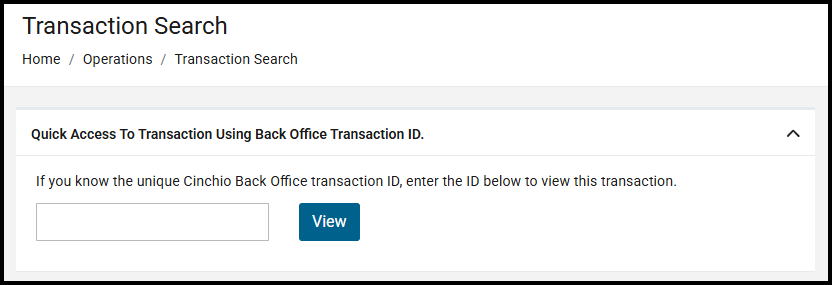 If you know the Cinchio Back Office Transaction ID of the transaction that you need to access: