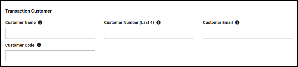 | Customer Number (Last 4) | Search for transactions based on the last 4 digits of the phone number of the customer associated with the transaction. |