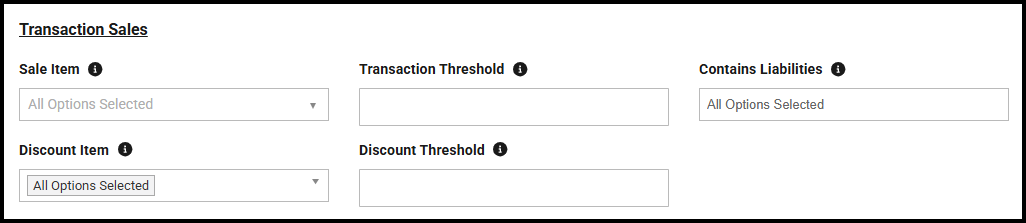 | Discount Item | Search for transactions containing a selected discount or deal. |