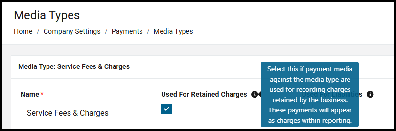 In addition to the Used For Liabilities flag released recently (see recent updates here), you can now also flag a media type as Used For Retained Charges for media types that contain media which are used to record any service charges and fees that are retained by the business and reported outside of standard revenue.