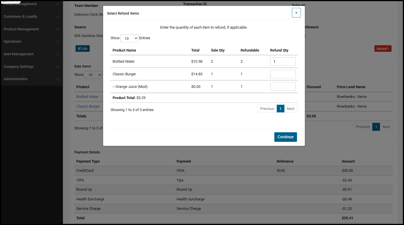 Alternatively, refunds can be partial, allowing selection of which products to refund to the customer first:
