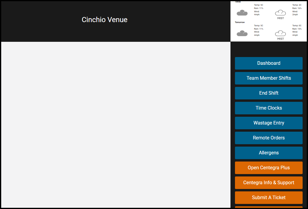 - Sales Dashboard: Quickly view your sales dashboard to see sales so far today at this location.
