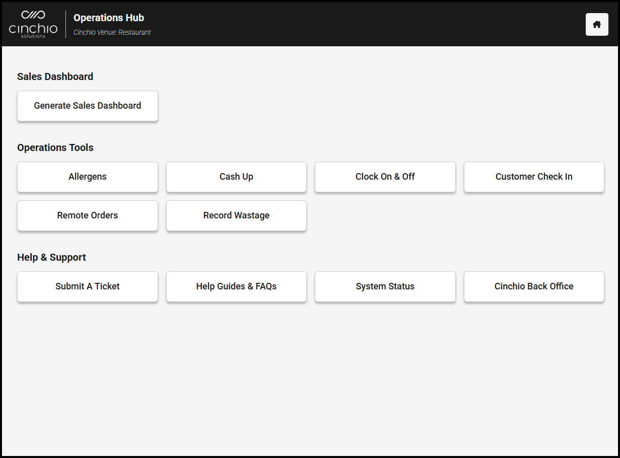 - Operations Tools: Access the FOH tools available within the Operation Hubs for your location.