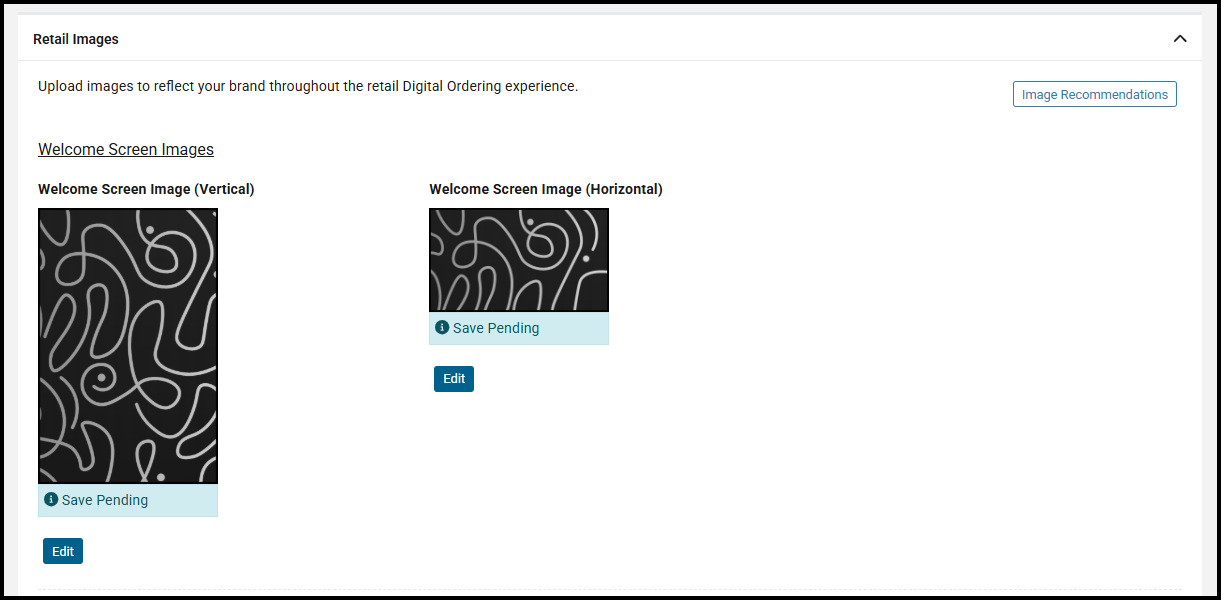 Within the Location Setup page for Digital Ordering, in the Retail Images section you can upload images to show on the kiosk welcome screen.
