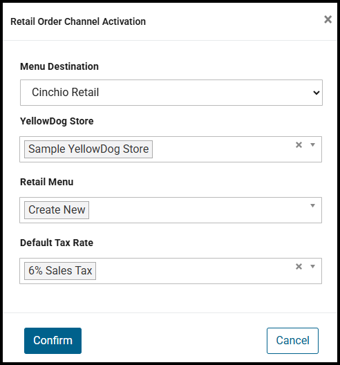 - Retail Menu: Select "Create New". (Unless you have a different retail location within the same site using the same store and you would prefer to share menus.)