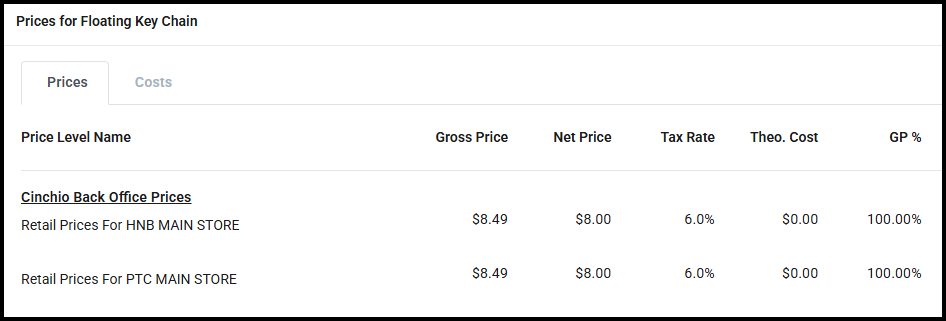 If the product is available at your store in YellowDog, the price against the product in YellowDog for your store is assigned against the product in Cinchio Back Office, seen within the products Prices & Costs section.