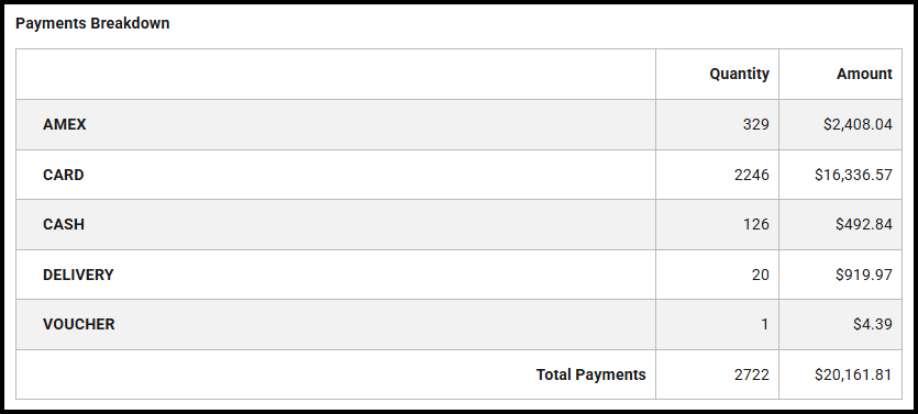 This report provides provides a clear snapshot of key sales, payment and discount activity for any day, all in one place.