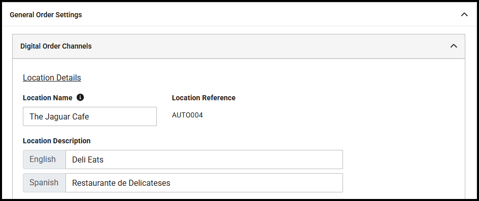 Likewise, via Digital Order Management > Advanced Settings > Location Setup you can also update the Location Name that your customers see for each location within your site: