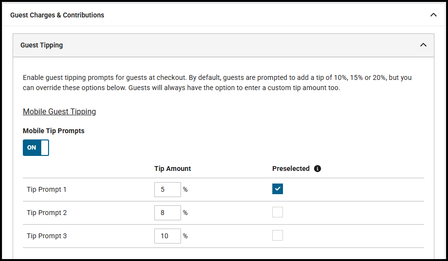 Customise Customer Tipping Prompts