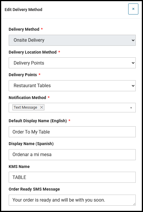 And for Delivery Methods Table and Onsite Delivery, select the way in which you want your customers to tell you where they are located: