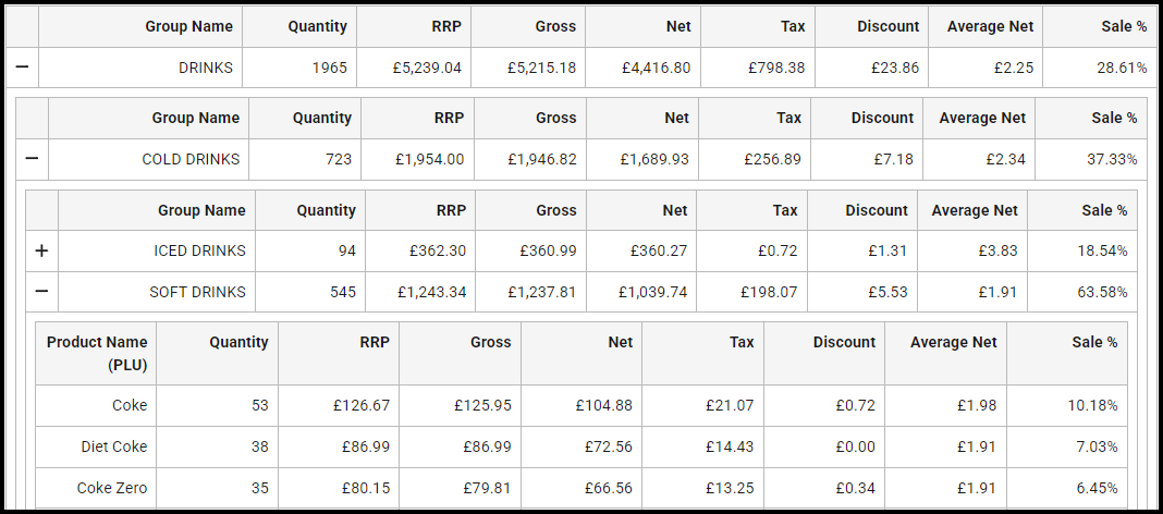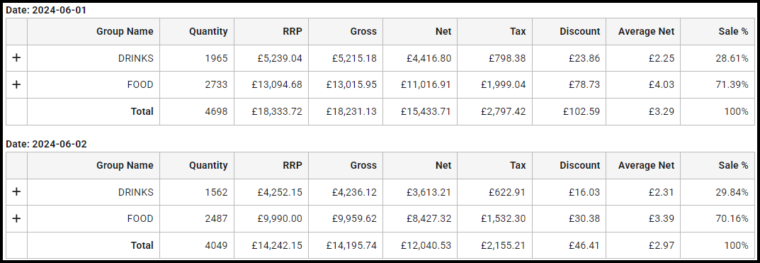 | RRP | Displays the sale value products sold within the group before the discount was applied. |