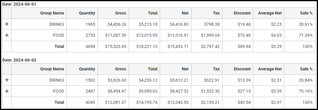 The Product Group Sales report gives you a clear summary of sales organised by product groups using your custom Report Grouping Hierarchy. You can also view daily breakdowns to track performance over time, helping you spot overall trends and day-to-day changes.