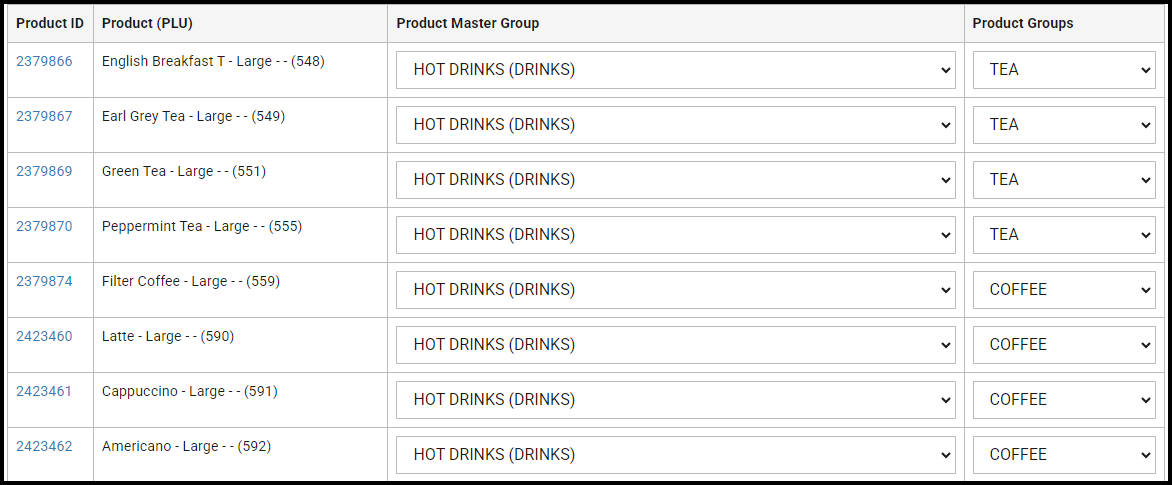 | Product ID | Displays the products unique ID. Select this to view the product. |