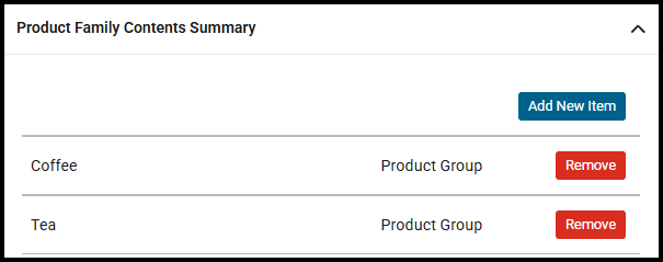 To add items to the product family, in the Product Family Contents Summary section select [Add New Item].