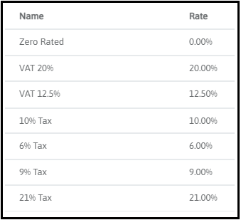 Tax Rate Configuration