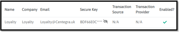 - Locate Loyalty in the list, and check that the API key is enabled. (For more details, Click Here.)